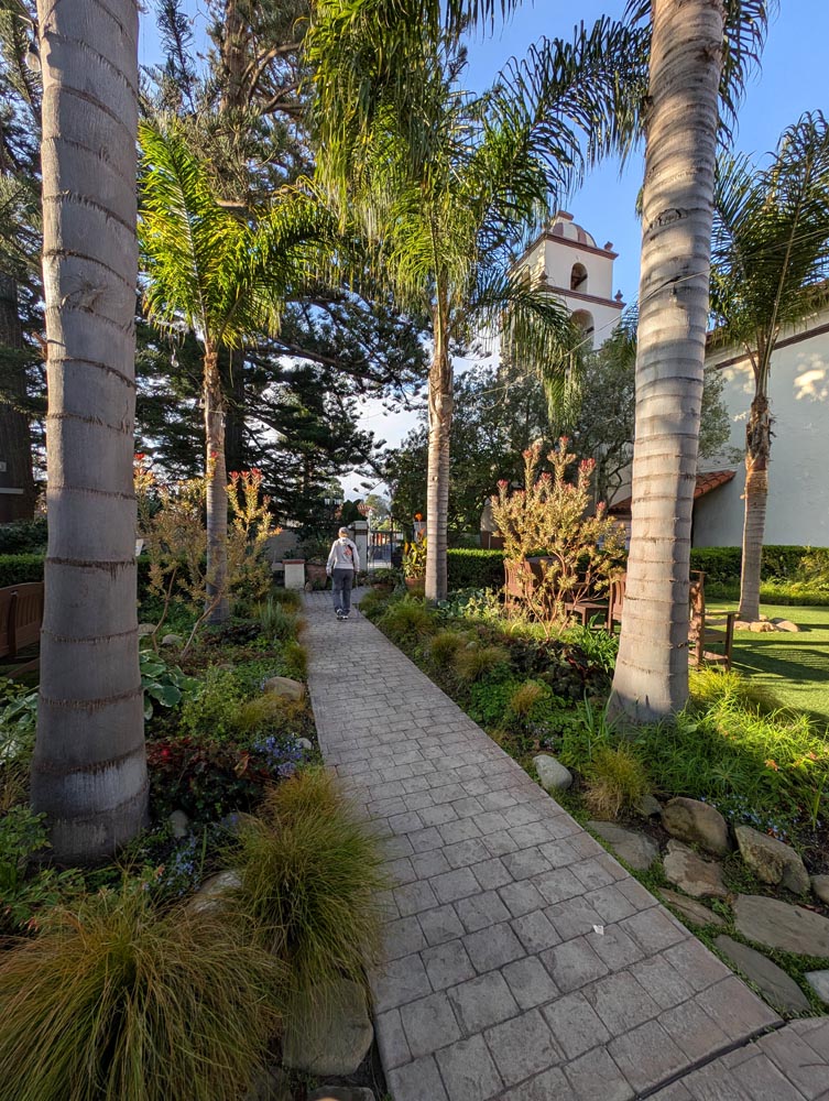 | DAY 4 Our first sight of the morning was the small resort town of Los Olivo's. While small and only two or so blocks long, it was tastefully done with copious floral displays among old 49er style buildings & wine tasting restaurants. At the end we met an eccentric local musician who showed us around his housee which was very interesting in a junktique sort of way. On to Santa Ynez, another historic tourist destination. It was also tastefully done but very small. Next was the Botanical Garden in Santa Barbara. This time we knew where to park and it was more level. We paid your somewhat hefty entry fee and enjoyed our next two hours there, but it was far less lush than our last visit years ago in the spring. On the way we spotted the old Santa Barbara mission and stopped briefly. Then on to our Carpinteria Anacapa campground. It sounded wonderful being right on the beach, but was crowded with young people, their noisy kids and their noisy toys. So we took a walk around this eclectic town for a few blocks and then back to the campground where we enjoyed some piece & quiet after a bit. |