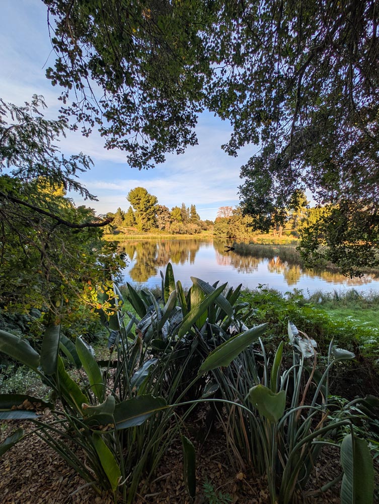 UC Davis Putah Creek garden area Old fashion decorations in front of our hotel.