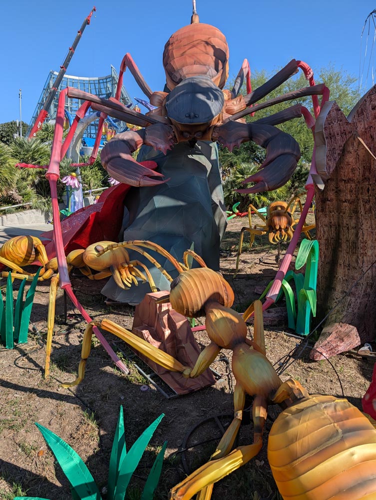 View from inside our bus. Some of the amazing silk flowers and critters of the botanical garden