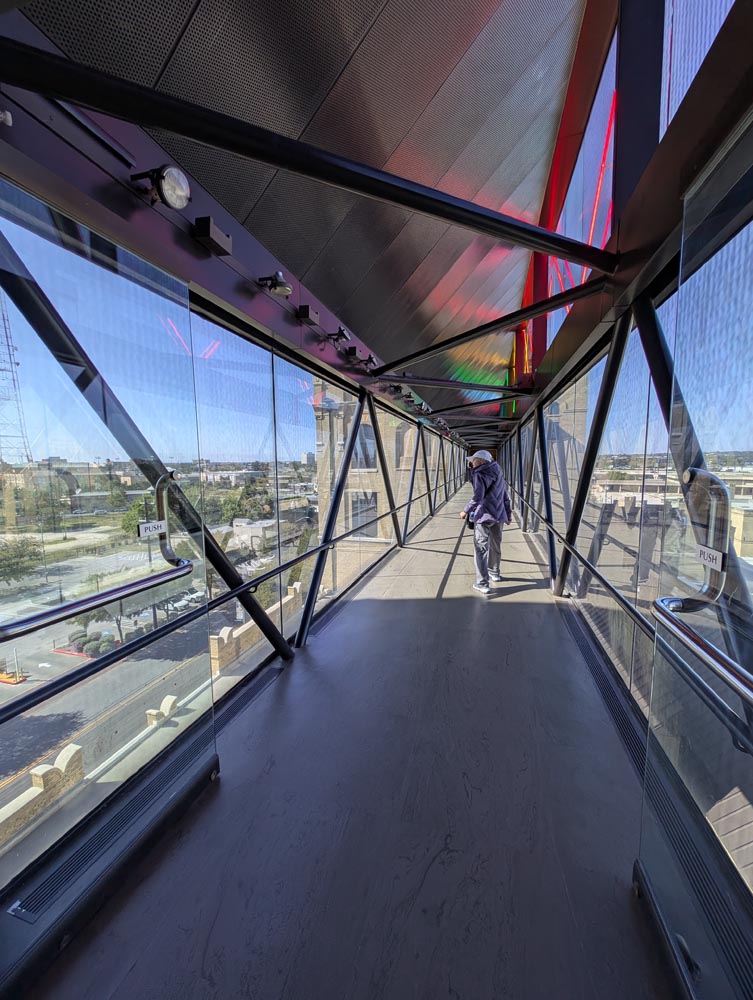 The spacious luminescent San Antinio Art museum. filled with intriguing pieces. The pathway between it's two buildings which gave one person vertigo.