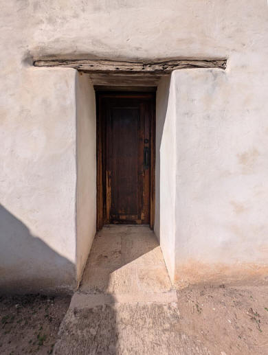 One of the many fascinating doorways. Note the large keystone. More in the Pueblo style than others