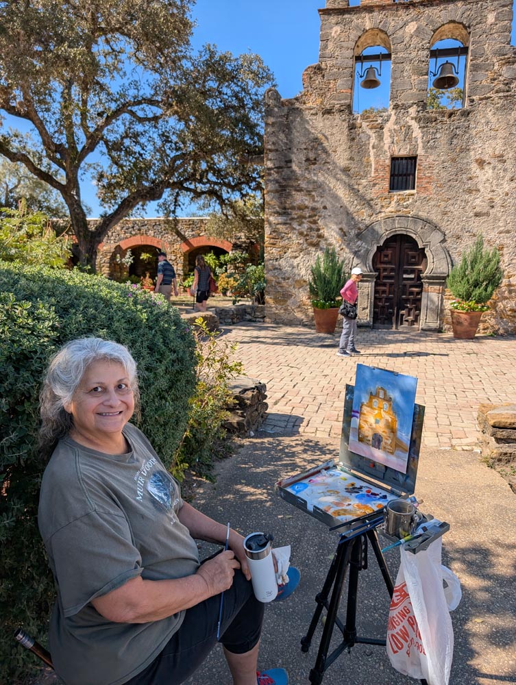 The mission was so appealing, this friendly lady was one of three artists The inside corridor of the mission.